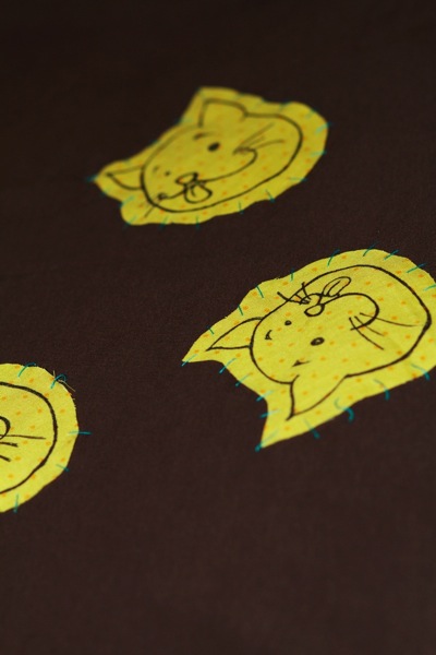 Fabric + Hairspray + Sharpie + Needle & thread.